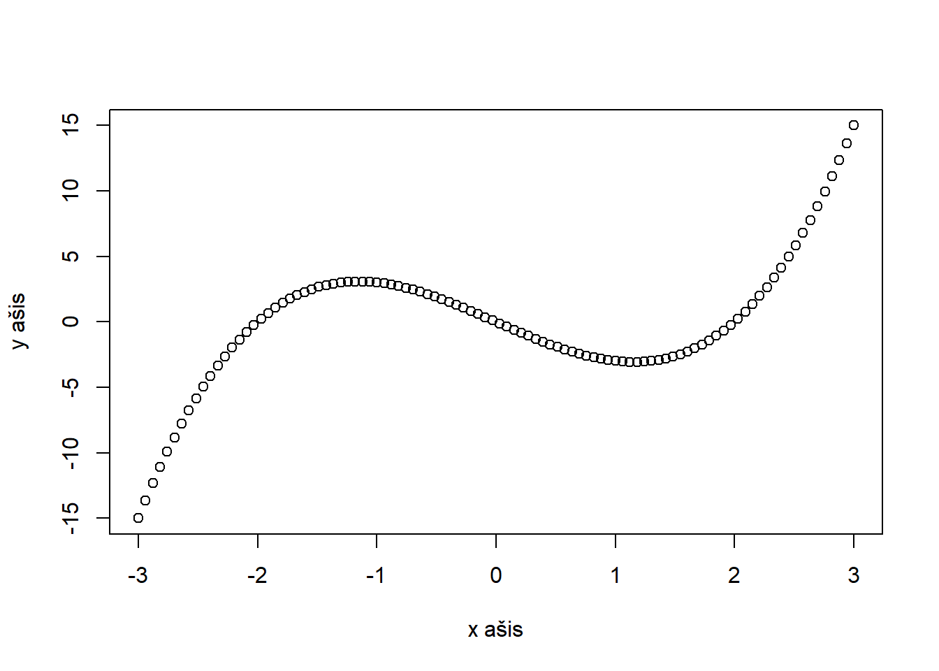 plot(x, y, xlab = "x ašis", ylab = "y ašis")